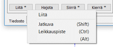 Useissa painikkeissa on tähti ( * ) sen merkkinä, että Shift-, Control- ja Alt-näppäimillä voidaan valita eri vaihtoehtoja ja suorittaa ko. toiminto hieman eri tavalla. Pikavalikko avataan hiiren 2. painikkeella (yleensä oikealla) tai pitkällä painikkeen painalluksella. Tämä erikoispiirre toimii sekä työkalupainikkeiden että dialogien painikkeiden kanssa. Osa toiminnoista näyttää lisäinformaatiota vaihtoehdoista (esim. Valitut, Kopioi).