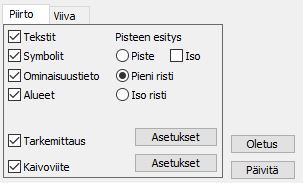 Aseta päälle Z-rasti ja poista Symbolit-rasti. Kuvaan tulee pistenumeron lisäksi korkeus, mutta symbolit ja viivatyypit poistuvat.