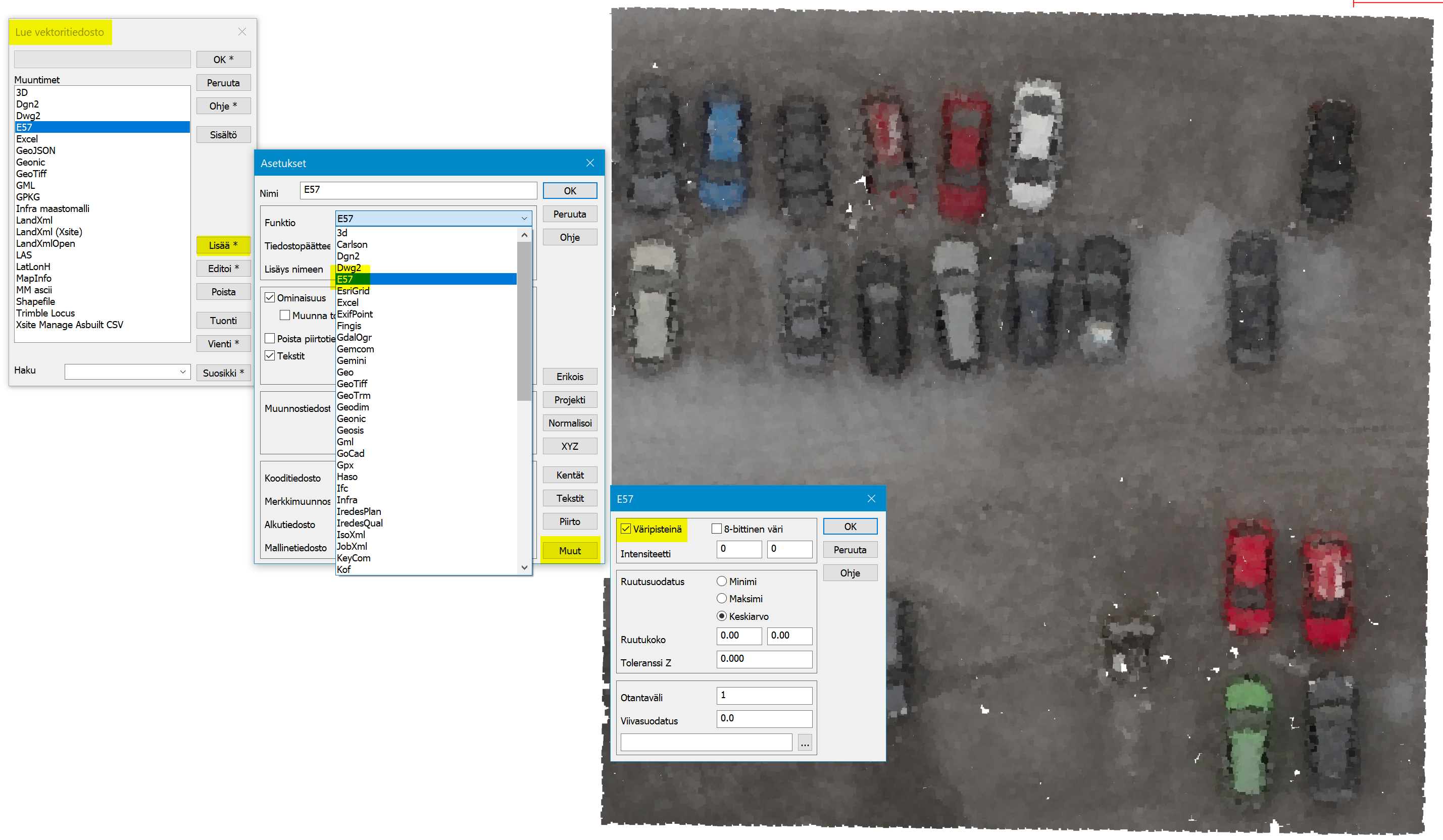 E57 tiedostot ovat binääritiedostoja, joita käytetään laserkeilausdatan tallentamiseen.