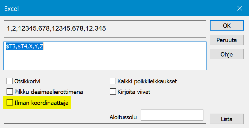 Lisätty Excel-muuntimeen Ilman koordinaatteja -asetus lukemaan pelkät ominaisuustiedot.