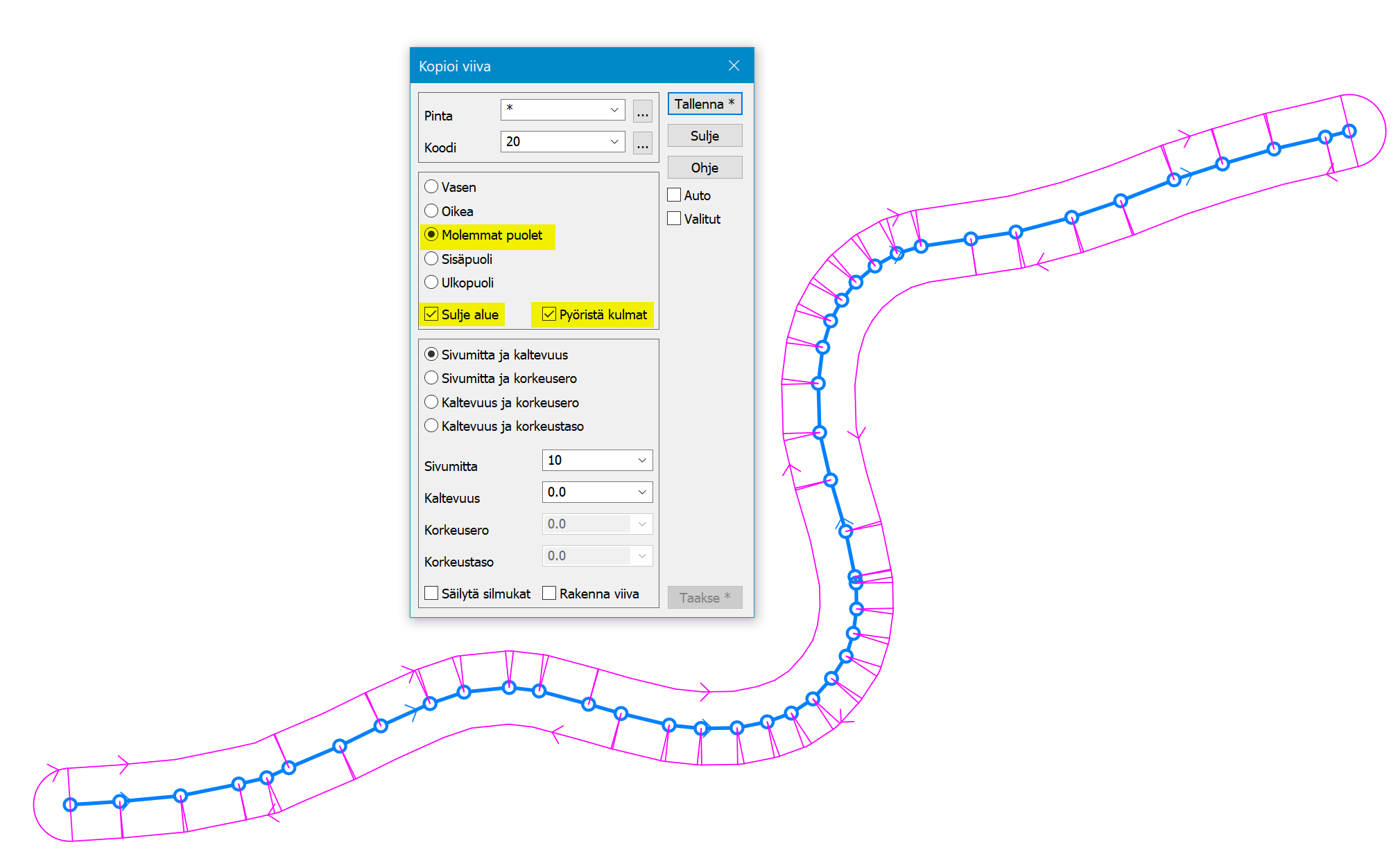 Lisätty asetus yhdistämään molemmille puolille luodut viivakopiot yhdeksi sulkeutuvaksi alueeksi.