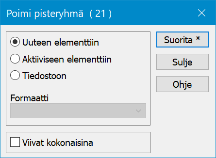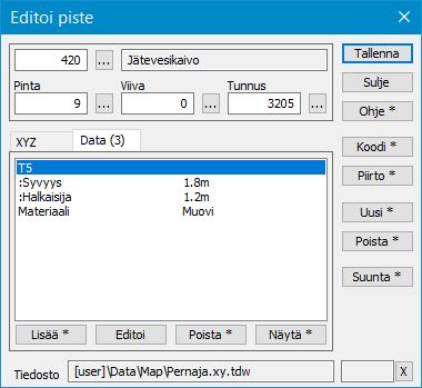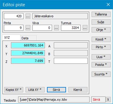 Uusi-painikkeella voi tässä dialogissa luoda uuden pisteen aktiiviseen tiedostoon.