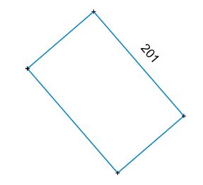 Tekstien suunnan voit määrittää näyttämällä Piste1 (ruksi ruutuun) ja Piste2 näytöllä hiirellä tai antamalla halutun kulmaluvun.