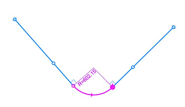 Kaaren luonti kohdistuu aktiiviseen osioon tai, jos aktiivinen on viivan päätepiste, ensimmäiseen/viimeiseen osioon. Tämä mahdollistaa kaarien luonnin lisättäessä pisteitä viivan alkuun tai loppuun. Tällöin tarvittavat pisteet lisätään viivaan ennen kaaren lisäystä.