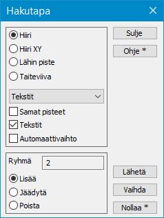 Valitsemalla hakutavaksi hiiri+Shift voit siirtää pistettä haluamaasi paikkaan. Pisteen korkeus pysyy samana.