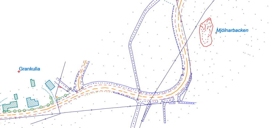 Avaa toiminto Editointi – Viivat – Editoi, paina Uusi (huomaa, että Osio-välilehti aktivoituu automaattisesti) ja aseta hakutavaksi Hiiri. Lisää pisteitä ja anna koodiksi 120 (Tien reuna). Jos haluat poistaa viimeisen lisäämäsi pisteen, voit peruuttaa Kumoa-toiminnolla (Ctrl+Z). Kun painat Tallenna, jää piirtämäsi viiva ruudulle.