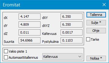 X, Y, Z Koordinaatteihin voidaan lisätä tai vähentää haluttu arvo.