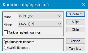 Listoilta löytyvät tasokoordinaattijärjestelmät kaistoineen: