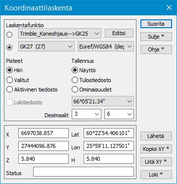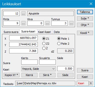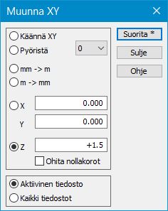 Käännä XY toiminnolla voidaan kääntää X- ja Y-koordinaatit, mikäli luettu aineisto on matemaattisessa koordinaatistossa. Toiminto kääntää myös symbolien ja tekstien kulmat.