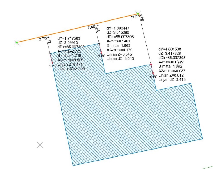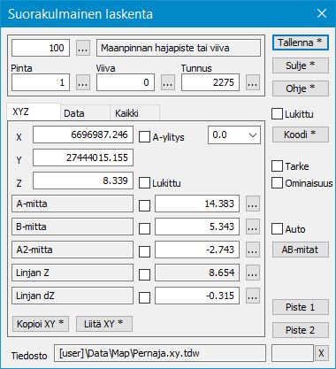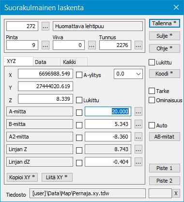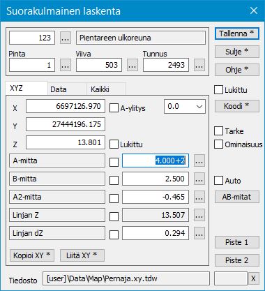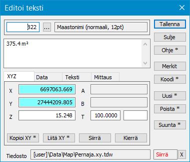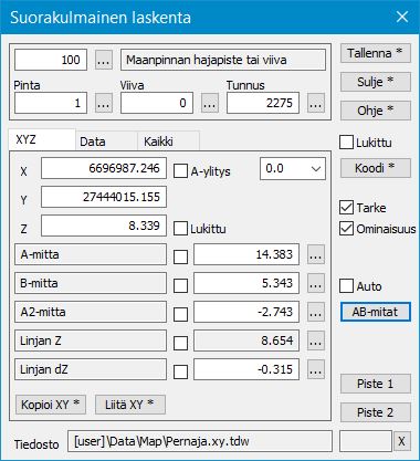 AB-mitat -painikkeella saat kirjoitettua A- ja/tai B-mitan arvon tekstinä ruutuun. Pisteen esitys määritellään tekstin koko.