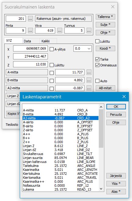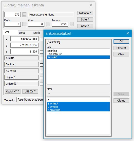 Painamalla Suorakulmainen laskenta toiminnon Ohje*+Shift näppäintä saat Erikoisasetukset auki.