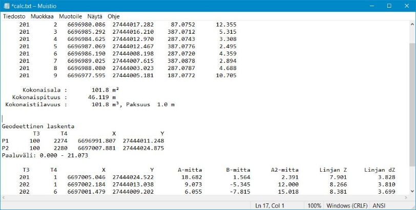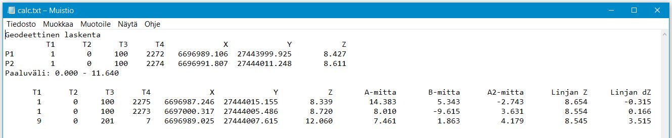 Saat suoritettujen laskentojen tulokset listauksena toiminnolla Laskenta – Laskentatulokset – Näytä (Ctrl+T). Huomaa, että tulokset tallennetaan laskennan tulostiedostoon vasta, kun suljet kyseisen laskentadialogin.