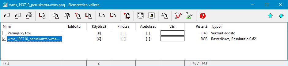 Pernaja.tg.tdw on aktiivisena elementtilistassa.