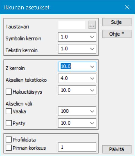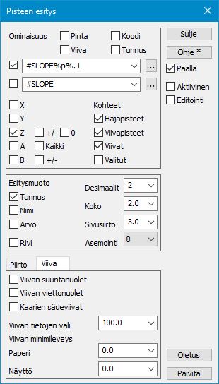 Poikkileikkausikkuna – Asetukset- Pisteen esitys