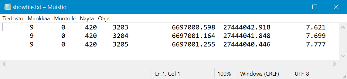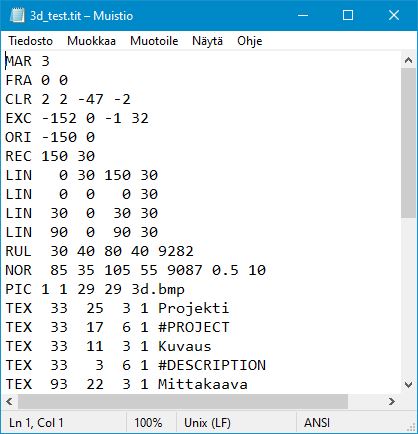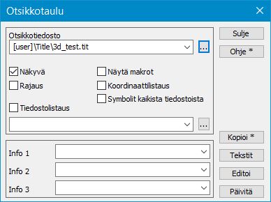 Muutokset tulevat näkyviin, kun otsikkotiedosto tallennetaan ja 3D-Winin näyttö päivitetään F5-painikkeella.