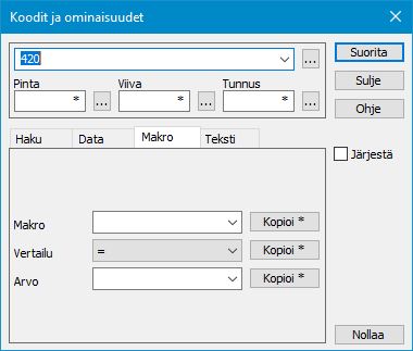 Nollaa aluksi ryhmä ja valitse hakutavaksi Koodit ja ominaisuudet. Voit valita toiminnon Työkalut – Hakutapa ja ryhmä tai hiiren kakkosnäppäimellä hakutavan Koodit ja ominaisuudet.