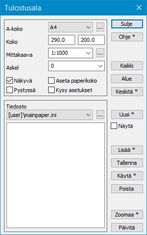 Askel-määritys antaa siirtää sinistä ruutua vain pykälittäin annetun metrimäärän verran kerrallaan. Tämä on hyödyllistä, jos esimerkiksi tulostetaan useita vierekkäisiä papereita. Tällöin tulostuksen asemointia on helpompi kontrolloida.