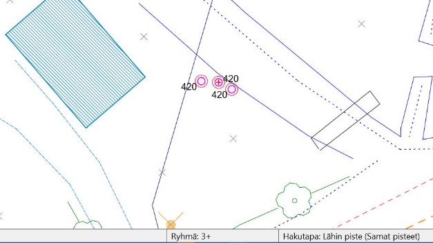 Hae T3-kentän koodilla 420 olevat pisteet, jolloin tiedostosta valitaan kolmen jätevesikaivon ryhmä.