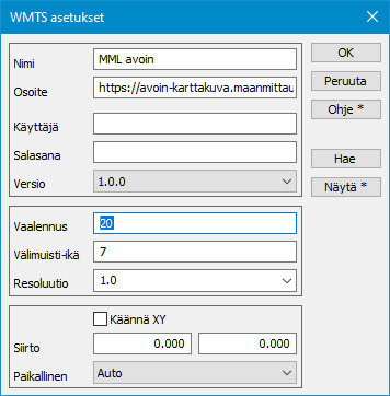 Tekstit-painikkeella ohjelma kysyy uudestaan arvot, jotka on merkitty kysyttäväksi käyttäjältä.