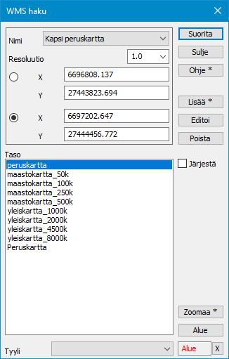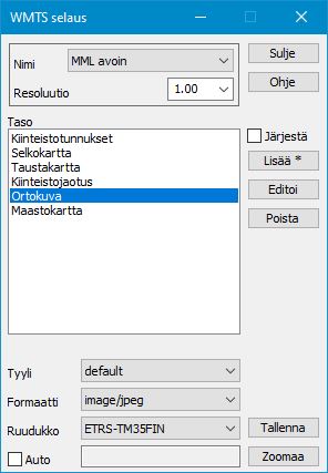 7 Tulostus / Karttarajapinnat / Taiteviiva-ikkunat