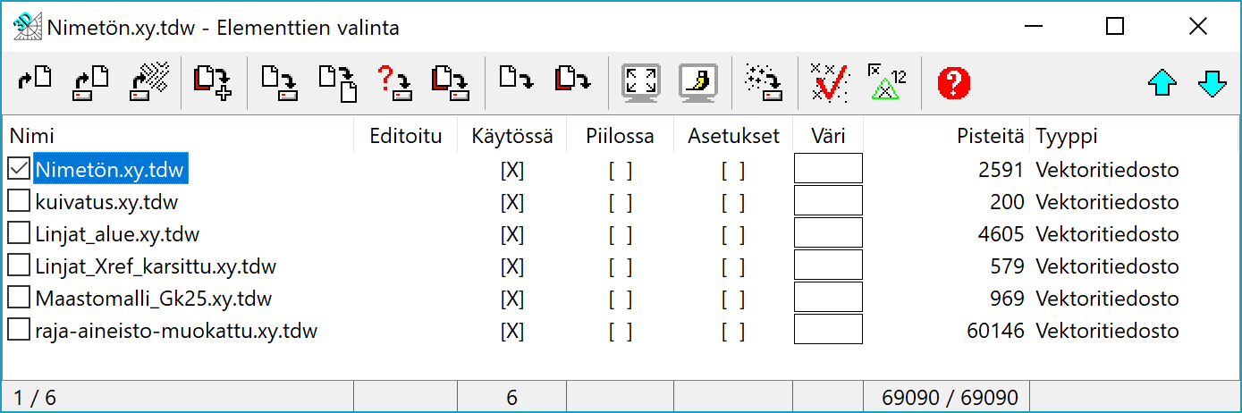 TASON TILA Mahdollistaa sammutettujen, jäädytettyjen tai lukittujen tasojen luvun. Oletuksena ne ohitetaan. Luettaessa sammutetut tasot luetaan myös näkymättömiksi merkatut kohteet.