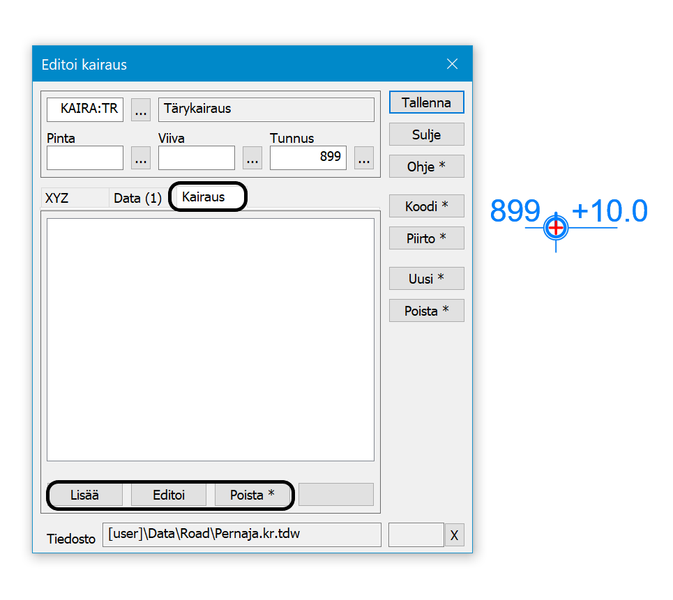 KAIRA:PA määrittää painokairaussymboolin sekä sille esimerkiksi korkeustiedot.