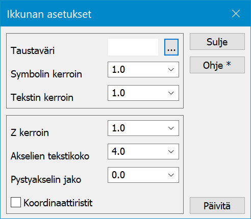 Z-kerroin määrää pystymittakaavan kertoimen suhteessa vaakamittakaavaan. Vaakamittakaava määrätään normaalisti paperiasetuksissa.