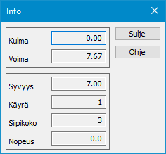 Info-toiminto näyttää ruudusta osoitetun pisteen tiedot. Kun siirryt toiselle syvyydelle/käyrälle, Info-ikkuna näyttää ko. käyrän ensimmäisen pisteen tiedot.