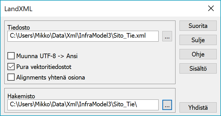 Avainsanat: Avaa LandXML, LandXML käsittely