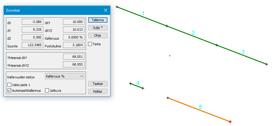 Asetuksina voidaan antaa havaintojen hajontojen sekä sulkuvirheiden toleranssit.