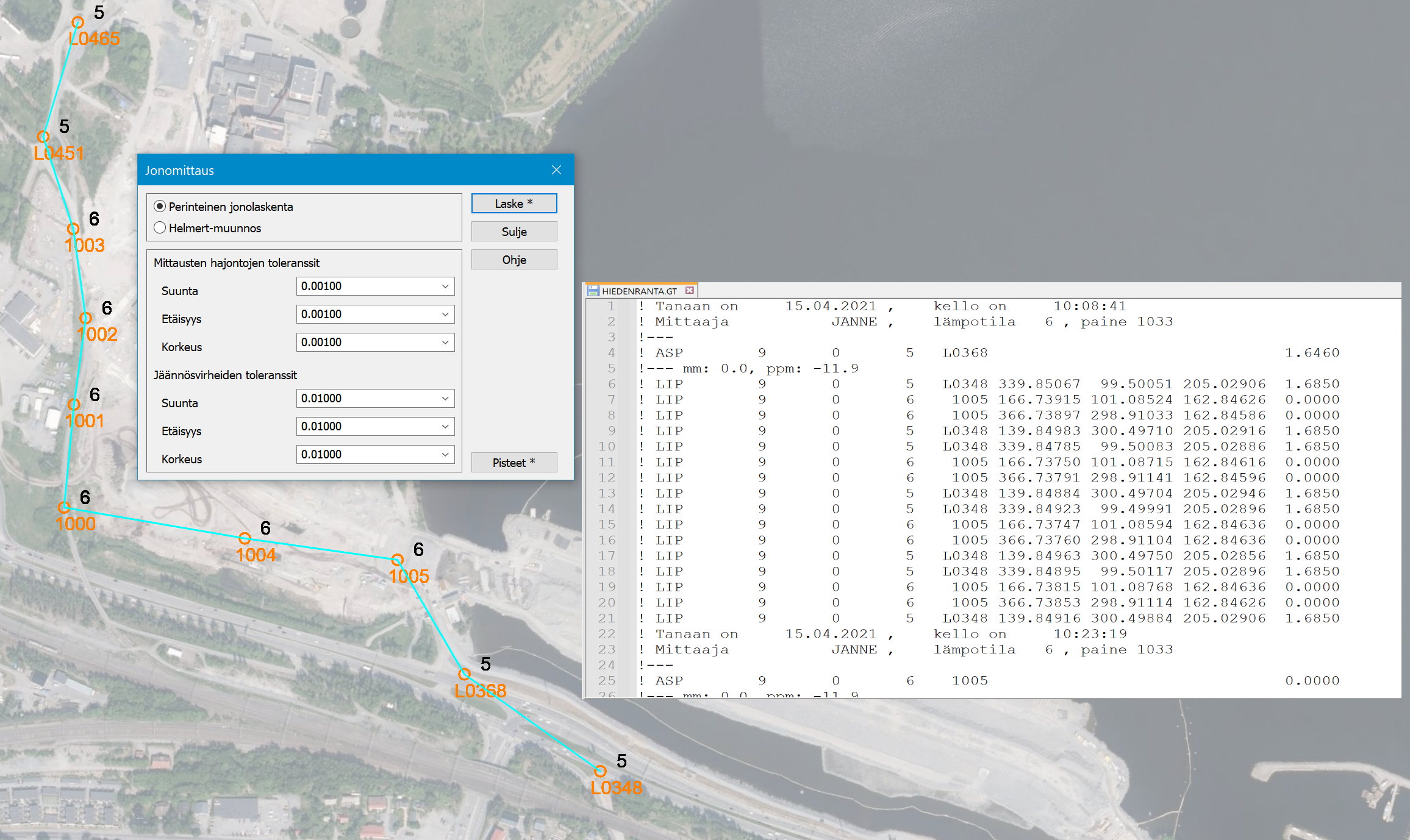 Havaintokirjan tulee olla Geonic-formaatissa, tunnetut pisteet voidaan lukea joko havaintokirjan mukana tai lisätä erillisestä tiedostosta.