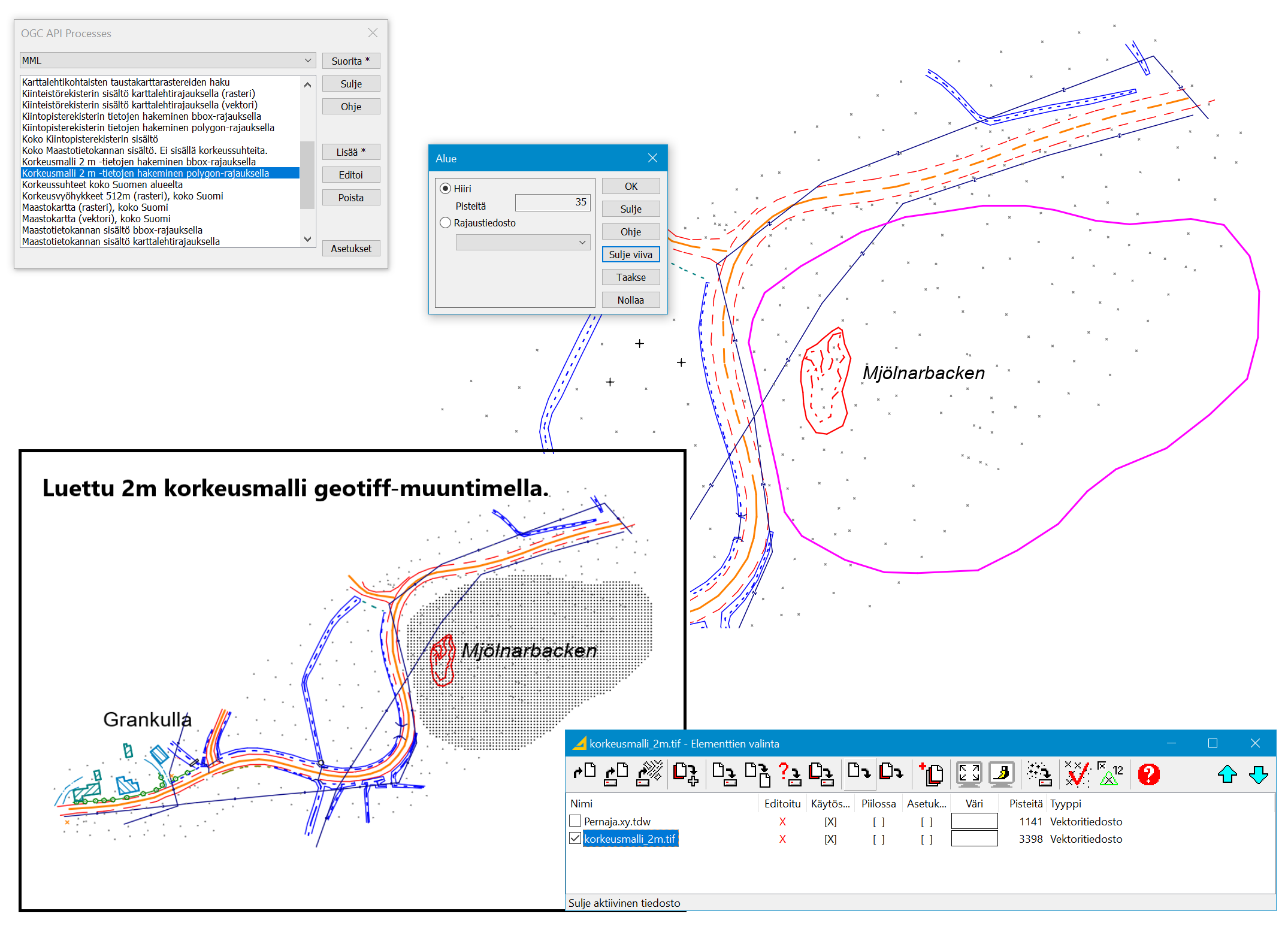 Testattu toistaiseksi vain Maanmittauslaitoksen palvelulla.