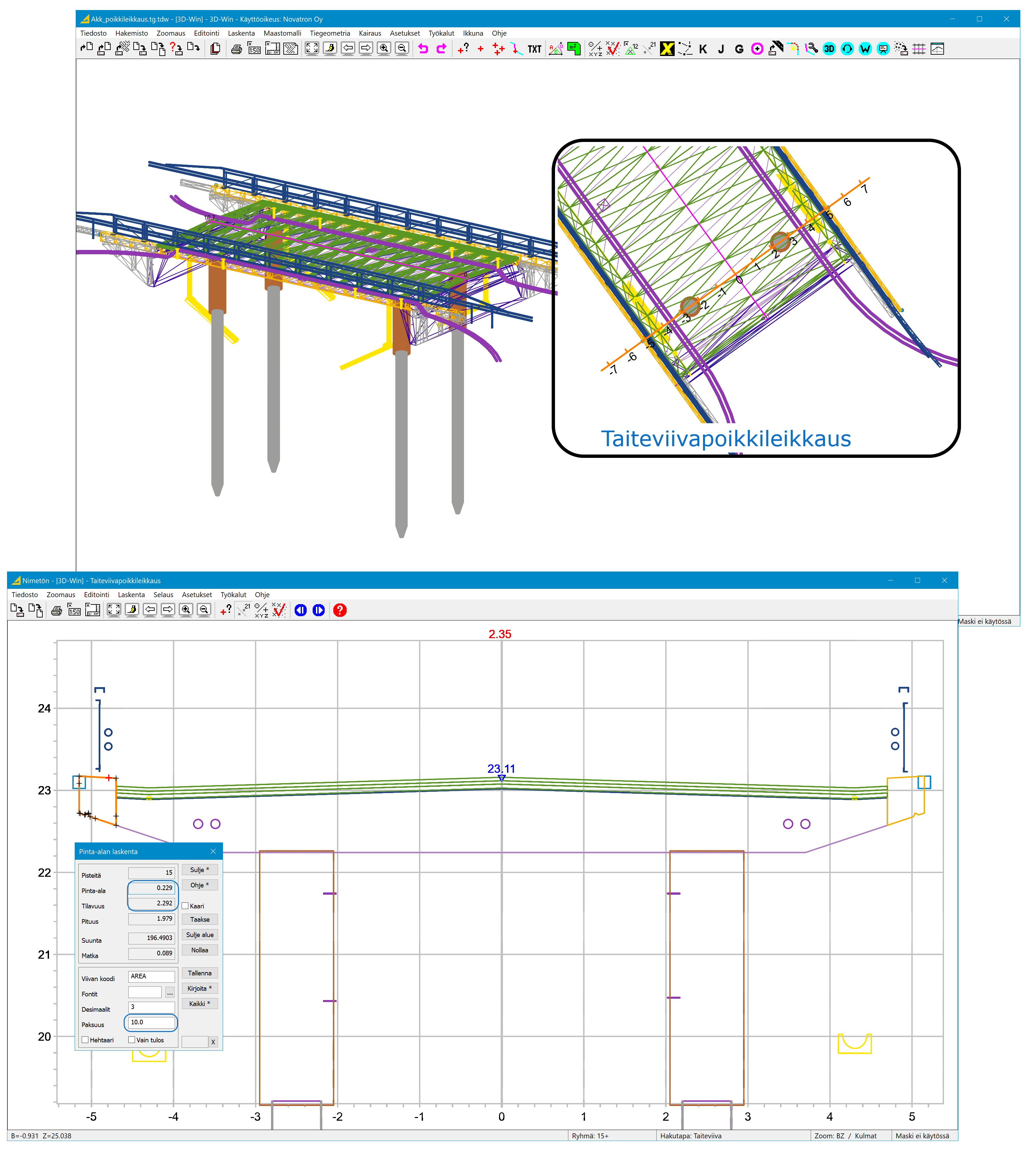 Viivojen numerointi (Editointi - Ominaisuudet - Numerointi), mikäli poikkileikkauksessa 9-pinnan viivat ei kuvaudu oikein.