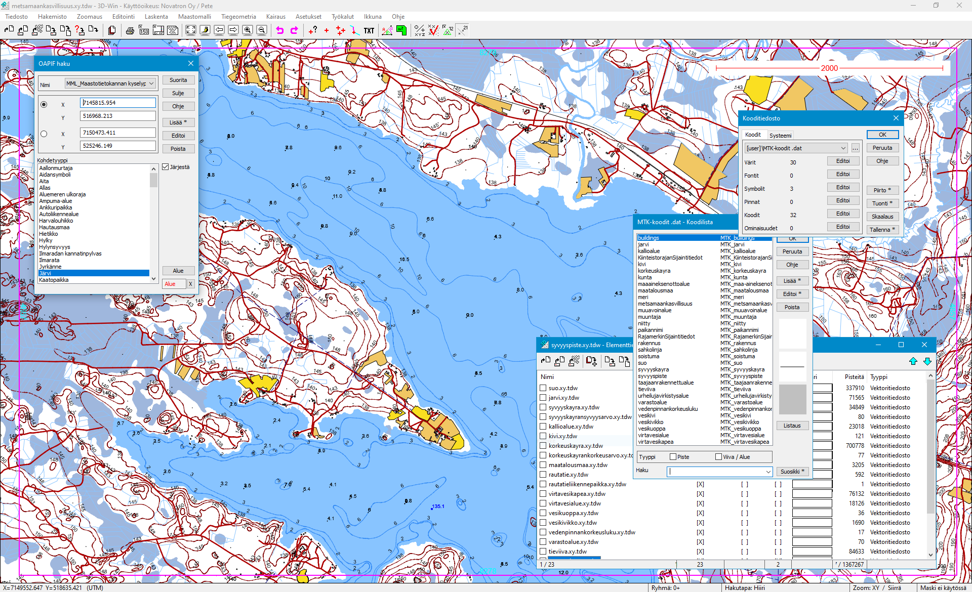 Kuvassa on käytetty vanhaa MTK-koodit kooditiedostoa. Uusi kooditiedosto on KTJ-koodit (Liitteenä).