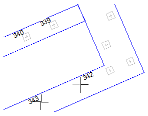 Viereisessä kuvassa tyypillinen tilanne: paaluilla 339 ja 340 on sekä teksti että suorakaide ja niille saada numero oikein. Paaluilta 342 ja 343 puuttuu suorakaide. Jos tässä antaa hakuetäisyydeksi liian suuren arvon, paalu 342 yhdistyy väärään suorakaiteeseen. Oikean reunan suorakaiteilla ei ole tekstiä lähellä, joten ne jäävät ilman pistenumeroa.