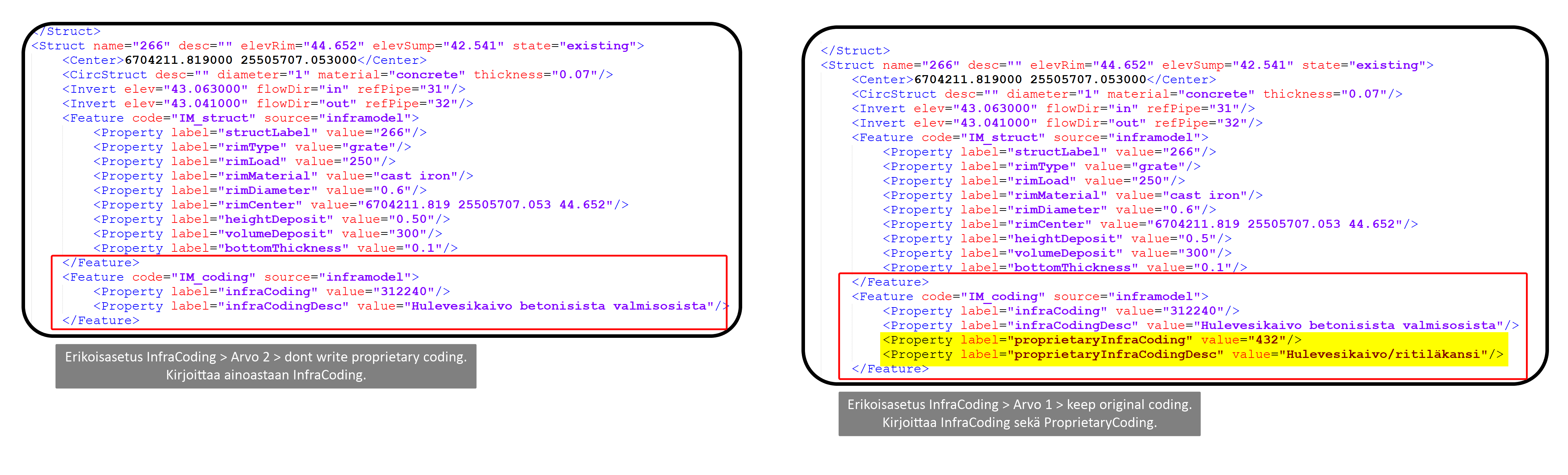 Muunnostiedosto muuttaa arvot uloskirjoitusvaiheessa InfraModel PipeNet 4.1 muuntimella standardin mukaisiksi.