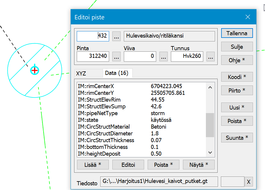 1 Lue mittaustiedosto Hulevesi_kaivot_putket.gt
