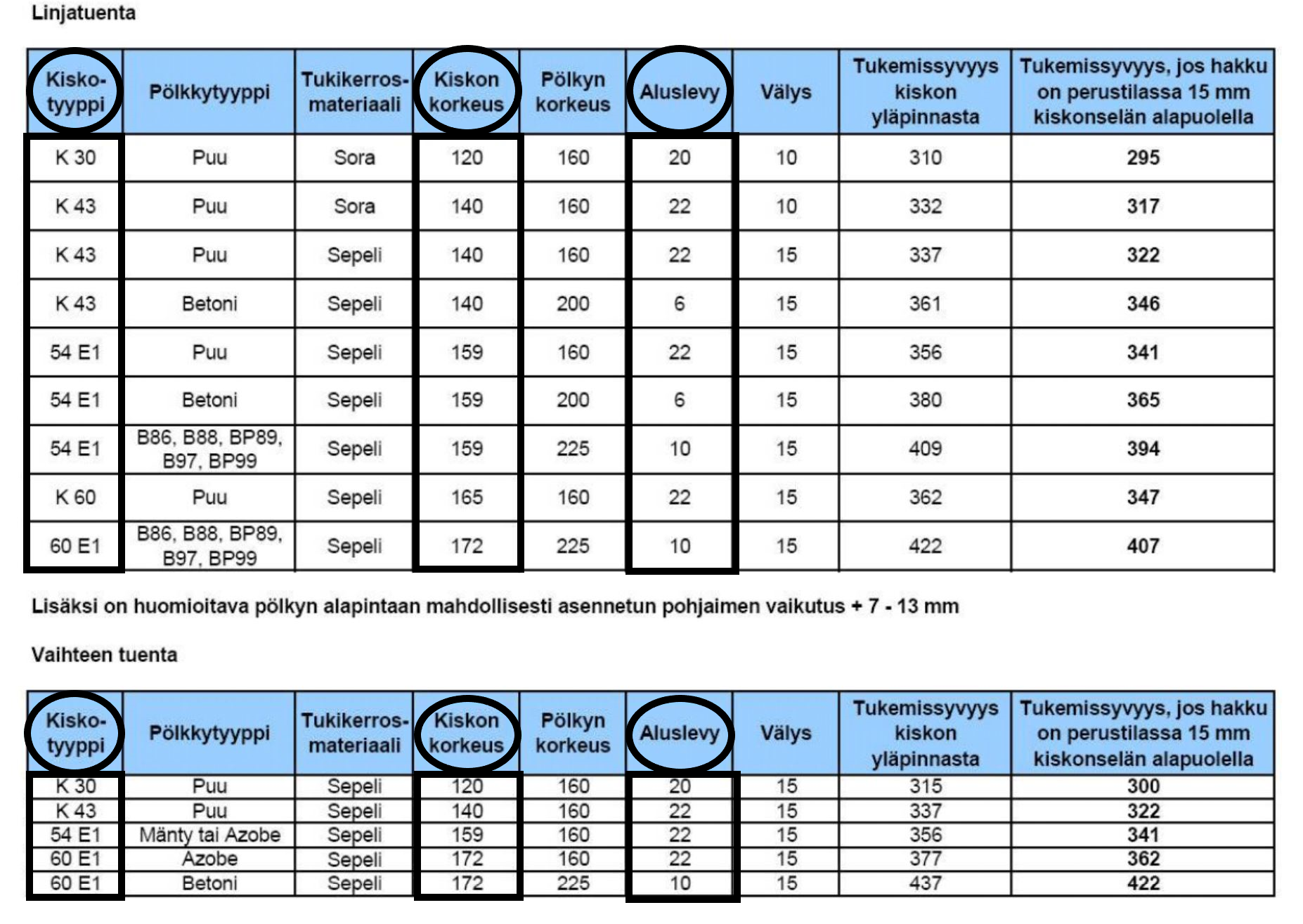 Radan korkeusviiva betoni- ja puupölkkyraiteessa (Liikennevirasto, RATO osa 2, radan geometria)