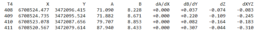 Tarkemittauksen Tulostus-toiminolla saat lasketut eromitat tulostiedostoon: