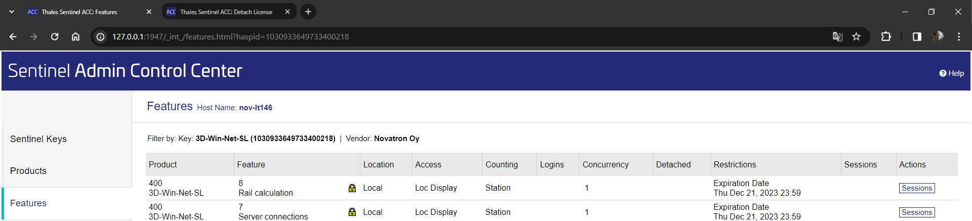 Sentinel ACC (Admin Control Center) on lisenssien hallintaan tarkoitettu ohjelmisto, joka asennetaan laiteajuriksi ja palveluksi ("Sentinel LDK licence manager") koneelle. Moni ohjelmistovalmistaja käyttää samaa ohjelmistoa lisenssien hallintaan. Mikäli koneellasi on useampi Sentinelin avulla suojattu ohjelmisto tai useita eri 3D-Win -ohjelman lisenssejä, näet nämä kaikki lisenssit samanaikaisesti hallintapaneelissa. Huomaa, että nämä ohjeet pätevät vain 3D-Win -ohjelmiston käyttämiseen, ei muiden mahdollisten sovellusten.