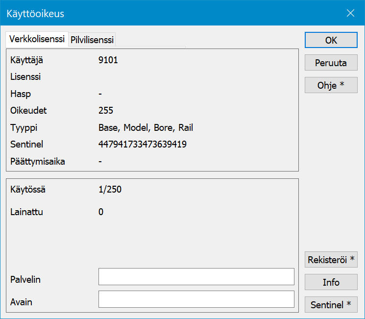 Huomioittehan, ettei palvelimella olevaan lisenssiin ole mahdollista tehdä muutoksia, mikäli käyttöoikeuden lainaus on kesken.