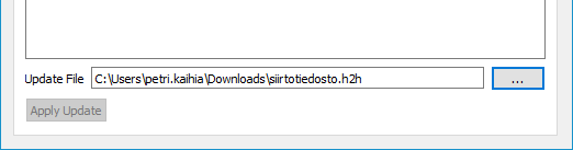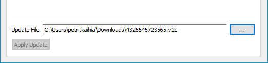 Lue tallennettu tiedosto alareunan selauspainikkeella sisään ja paina Apply Update.