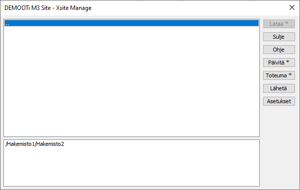 Kun tiedostot ovat paikallisesti oikeassa paikassa, sinun täytyy valita Xsite Manage -toiminnosta oikea hakemisto. Tässä esimerkissä sinun tulisi siis avata Hakemisto2.
